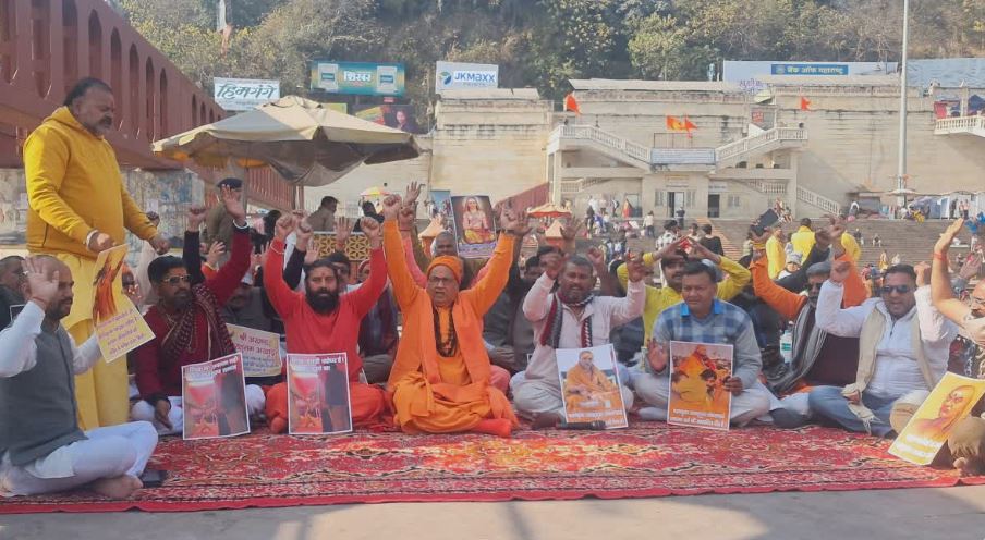 हरिद्वार – प्रयागराज माघ मेले में उपजे विवाद ने अब उत्तराखंड की धर्मनगरी हरिद्वार को भी आंदोलित कर दिया है। शंकराचार्य स्वामी अविमुक्तेश्वरानंद के समर्थन में साधु-संतों का आक्रोश खुलकर सामने आया, जब हर की पौड़ी पर भारत साधु समाज और श्री अखंड परशुराम अखाड़े के नेतृत्व में जोरदार धरना प्रदर्शन हुआ। संत समाज ने साफ शब्दों में चेतावनी दी कि यदि प्रयागराज प्रशासन ने शंकराचार्य से सार्वजनिक रूप से माफी नहीं मांगी, तो वे अपनी शिखा तक कटवाने से पीछे नहीं हटेंगे।